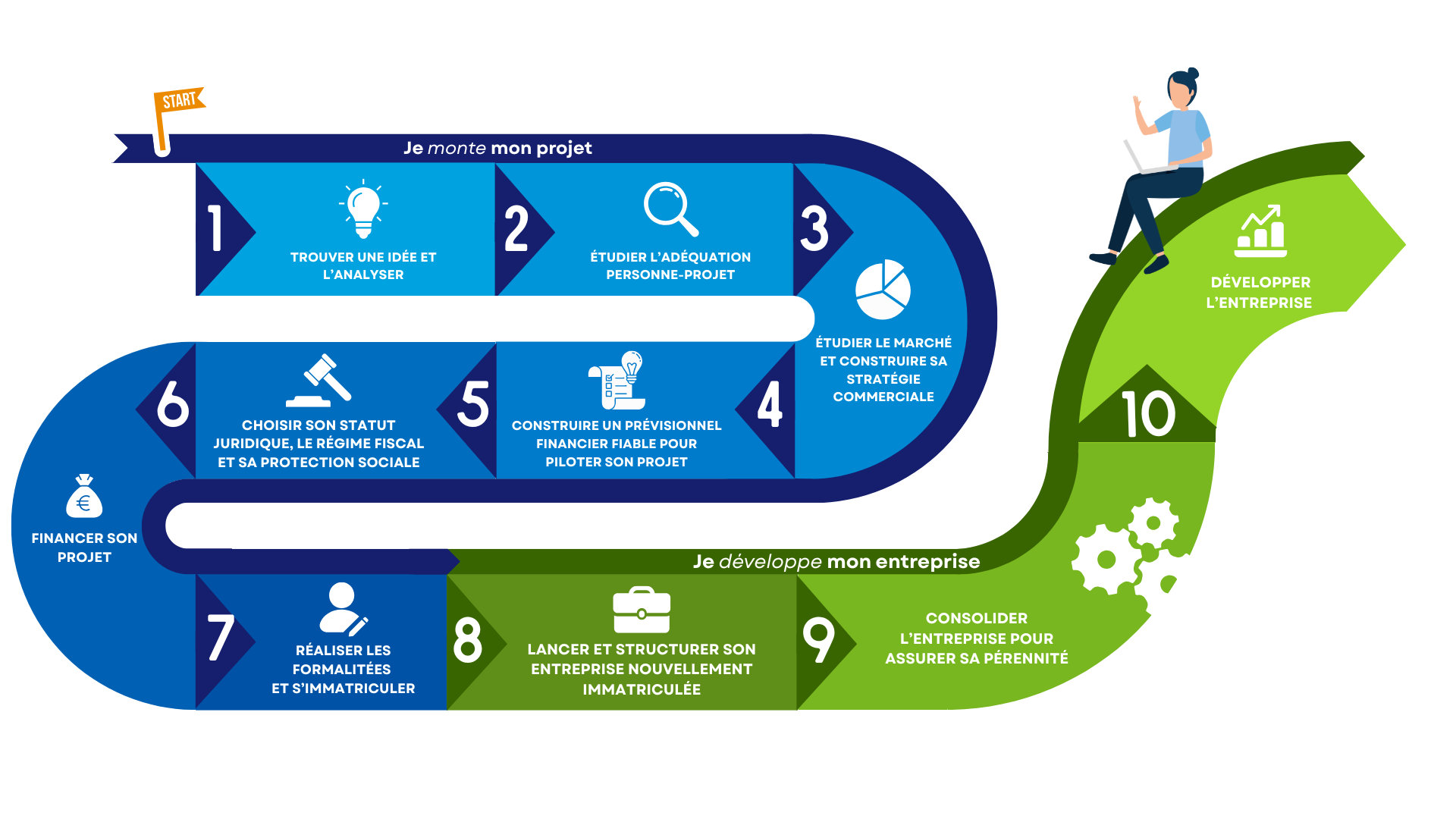 Nous vous accompagnons à chaque étape de votre projet, à travers le « fil de la création d’entreprise ».